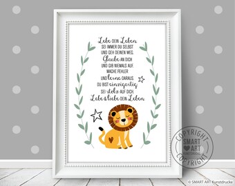 Kinderzimmerdekoration Lowe Din A4 Kunstdruck Poster Kleiner Lowe Ungerahmt Tier Kinderzimmer Boho Herz Bild Handmade Produkte