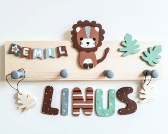 Tiger Loewe Und Panda Kinder Garderobe Aus Holz Kreative Feder